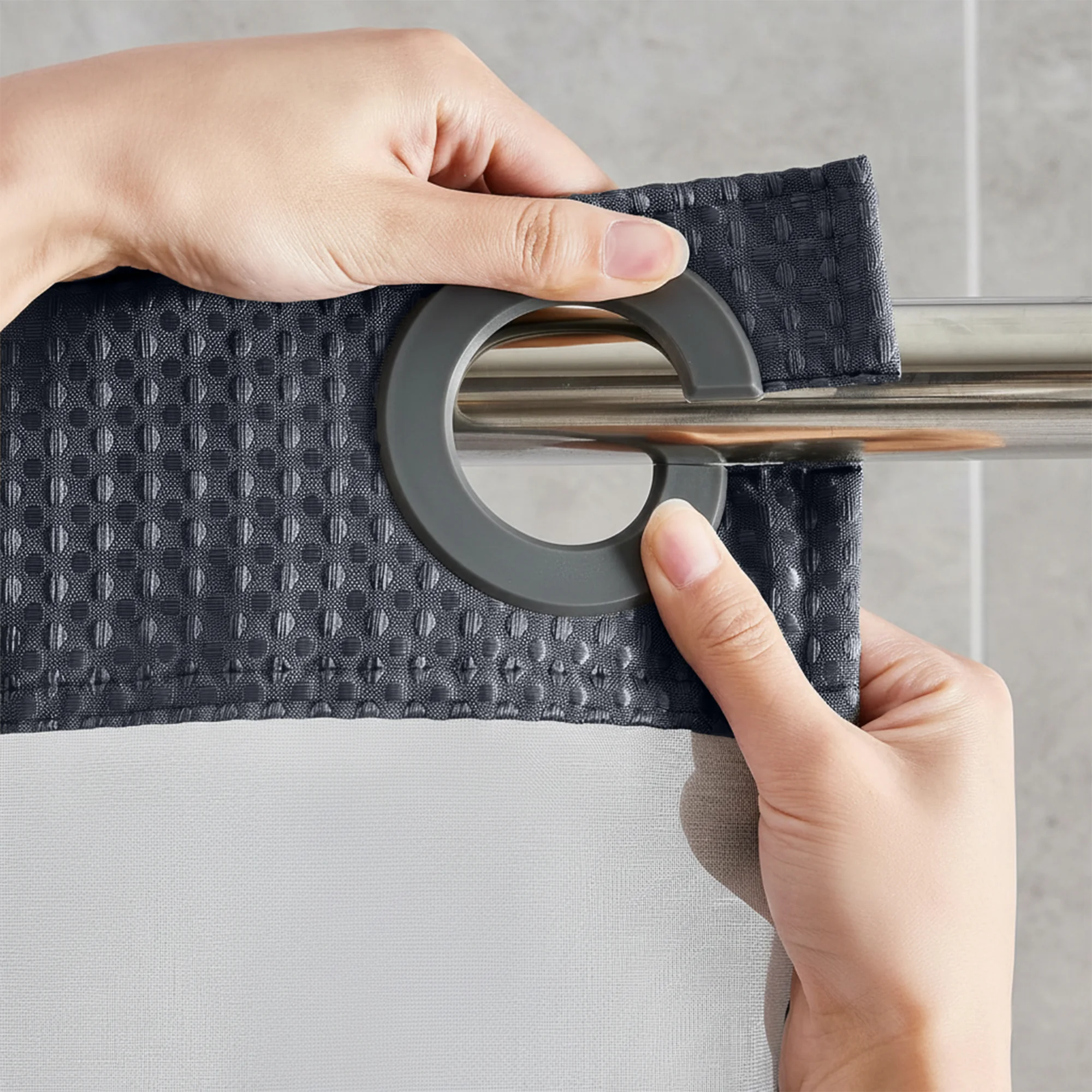 The neutral white and grey colors make it easy to match different bathroom styles. These curtains serve as a subtle backdrop that complements bold or patterned accessories, enhancing the overall visual appeal without competing for attention.