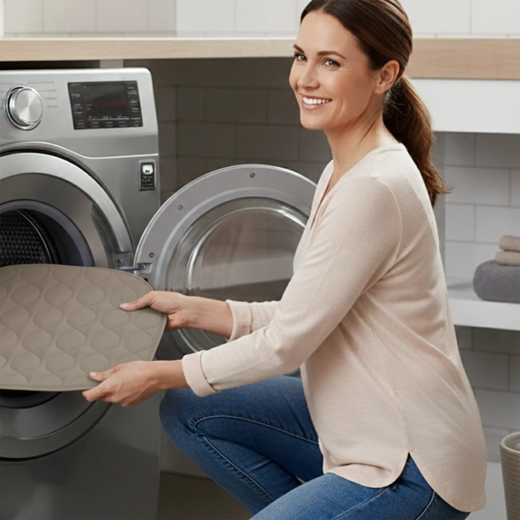 - Hygienx waterproof chair pads, 20″x20″, available in green, navy blue, and tan.