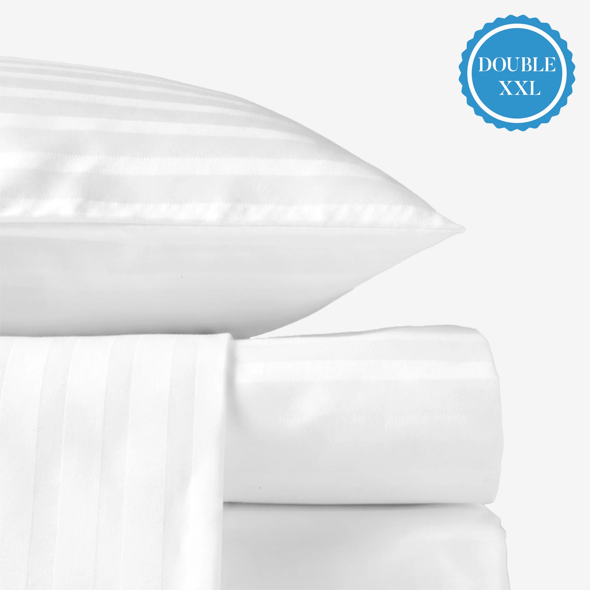 T-250 Luxury White Stripe Flat Sheets XXL for Double, Queen, and King Beds