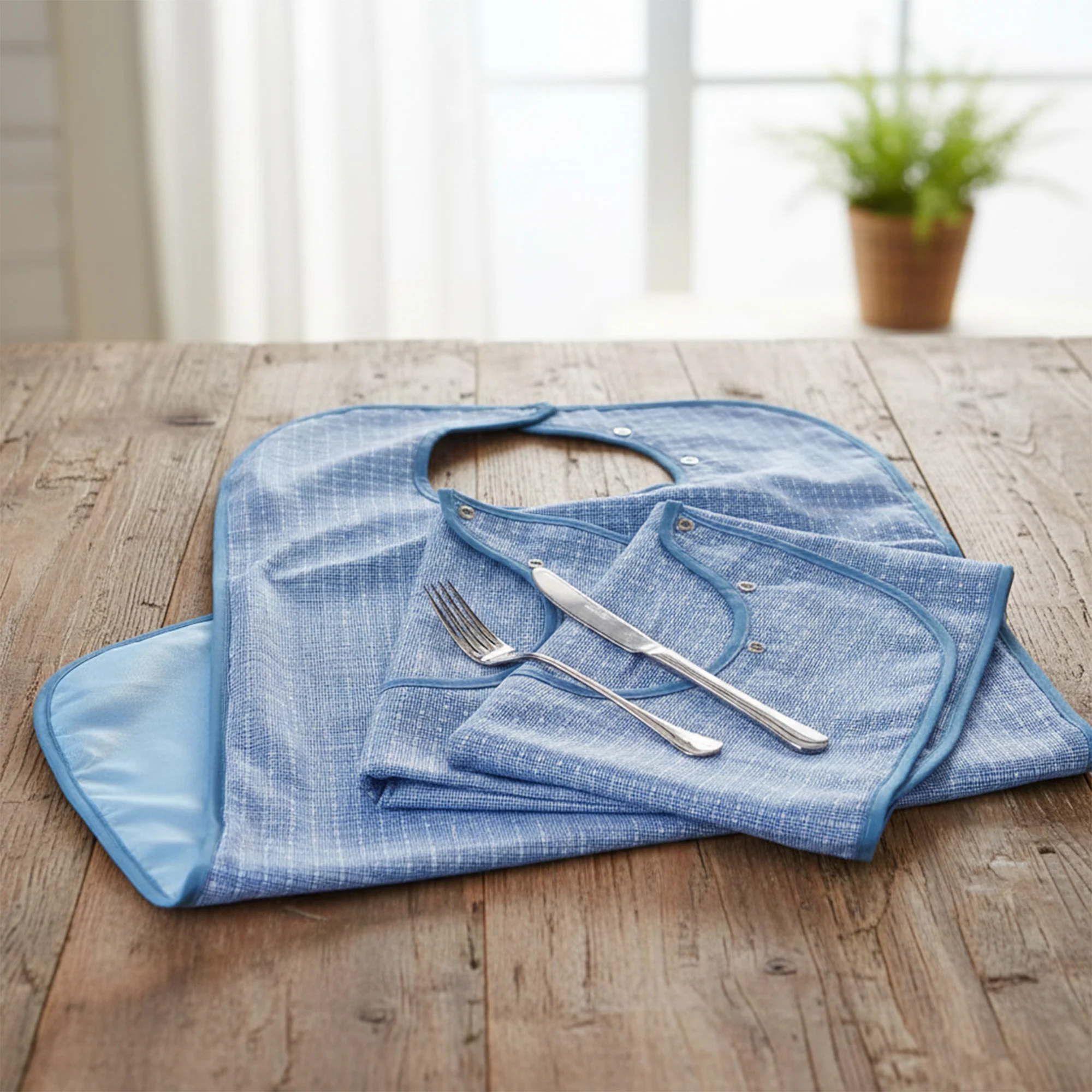 Even outside of care facilities, these bibs can be useful in many homes. Families caring for aging parents or loved ones recovering from illness find them a practical support tool. They also work well for adults with disabilities who may need help with mealtime protection. By reducing stress around spills, these bibs help families focus on enjoying meals together instead of worrying about cleanup.